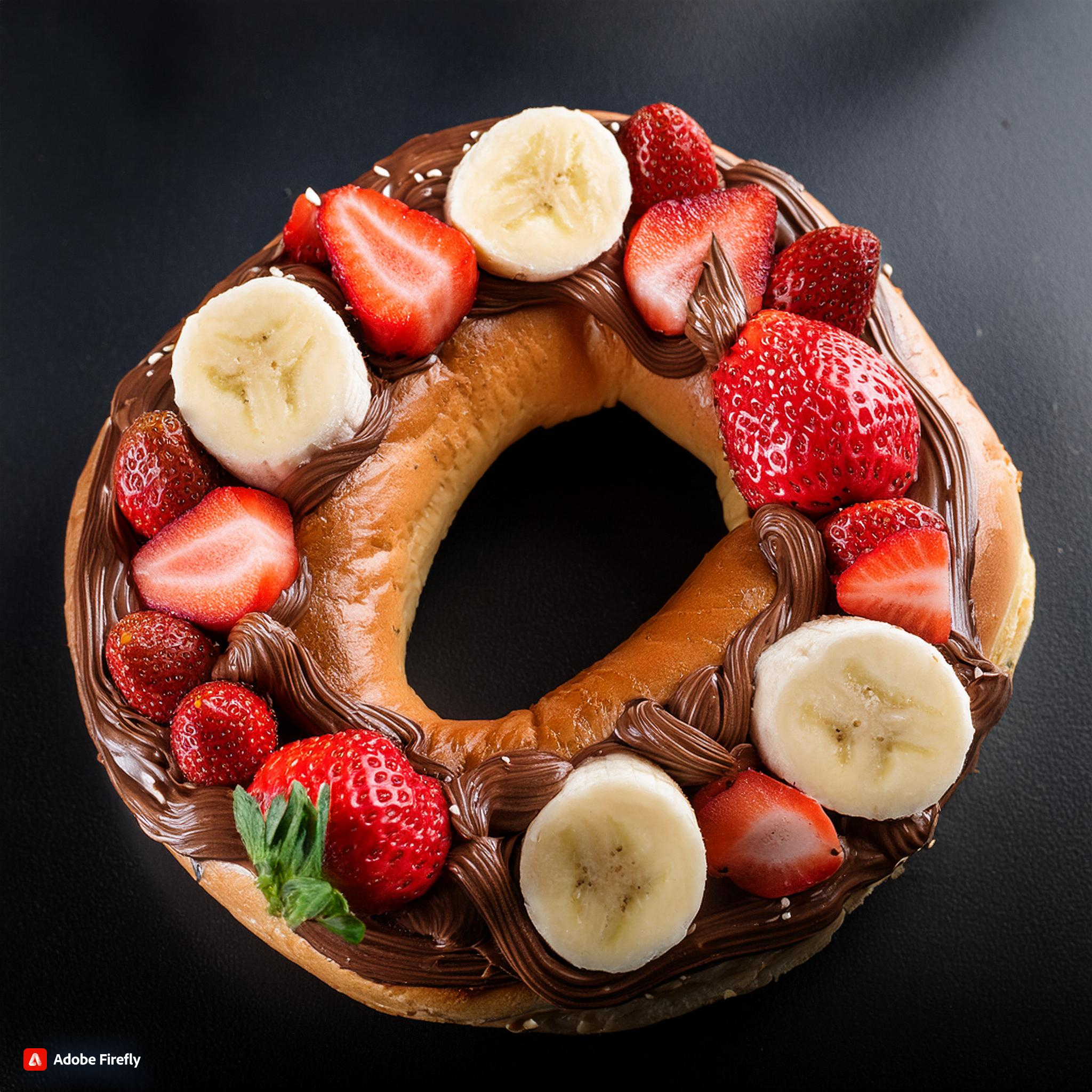Turkish style soft bagel with Nutella, strawberries, and banana