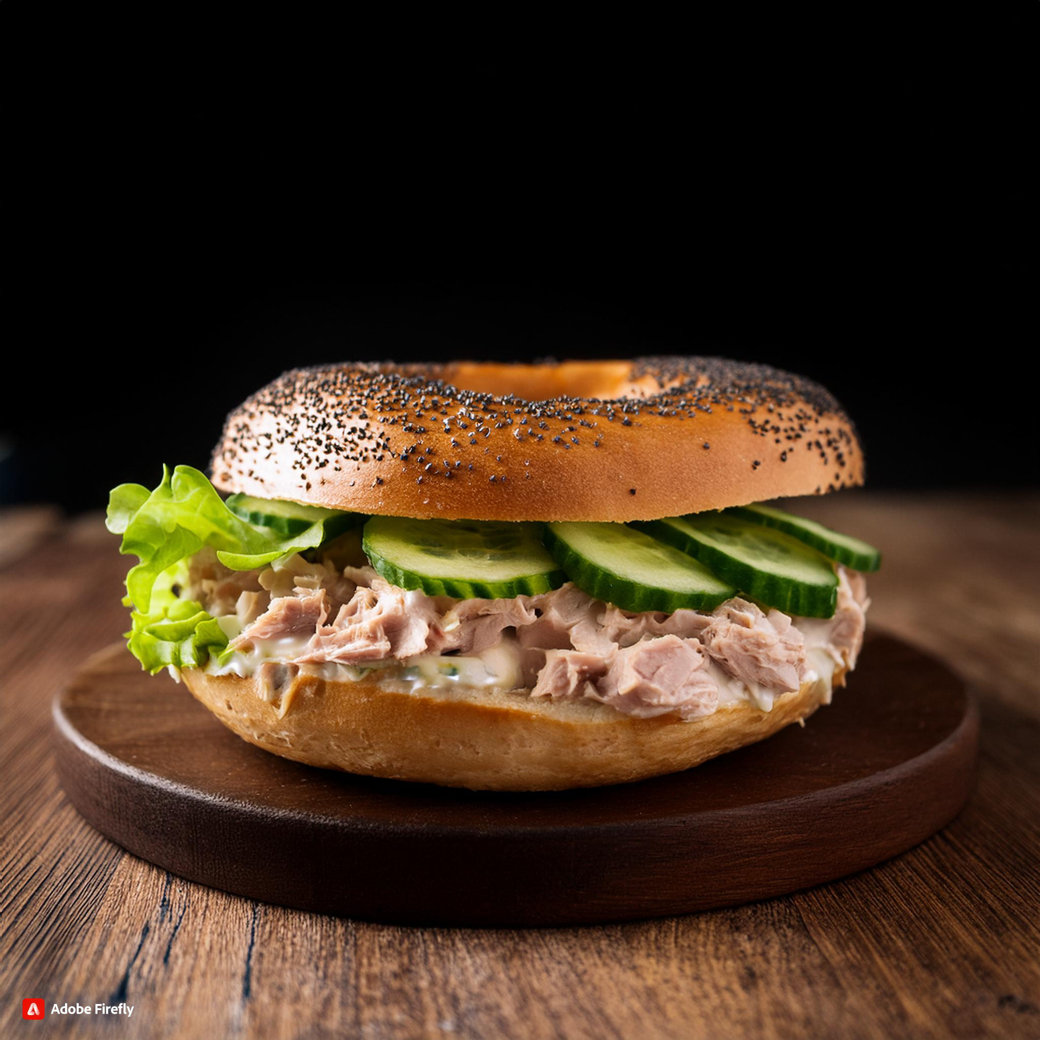Turkish style soft bagel with tangy tuna mix, cucumber, and Romaine lettuce