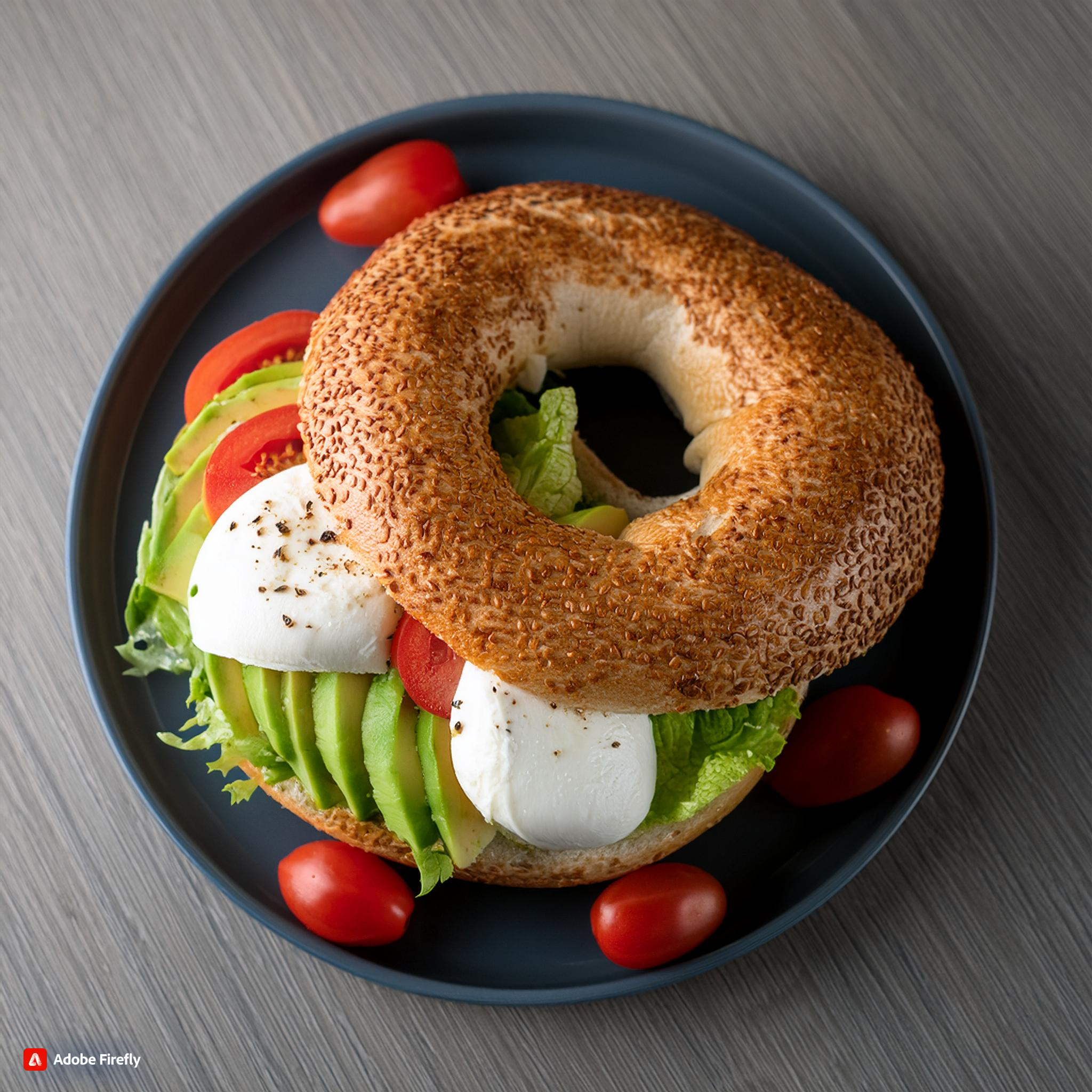 Turkish style soft bagel with Buffalo Mozzarella, fresh tomatoes, and crushed avocado
